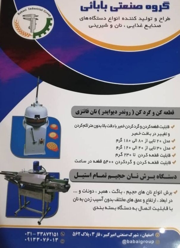 طراح و تولید کننده انواع دستگاه های صنایع غذایی . نان و شیرینی
